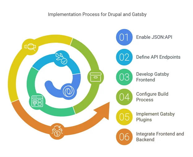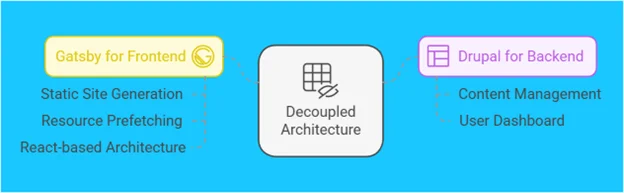 To address these challenges, we decided to decouple the architecture by implementing Gatsby as the frontend while retaining Drupal as the backend API service. This approach allowed us to leverage the strengths of each platform: